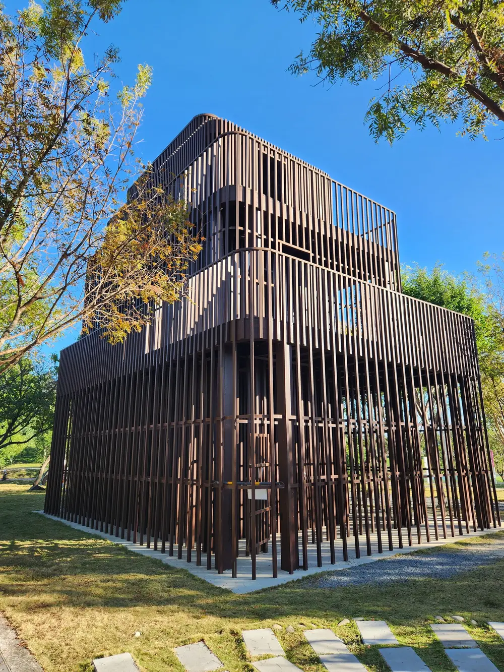 吃飽喝足後,一起走進這座瞭望塔探險吧!由下往上踩著木頭樓梯,感受光影在木片間的寬窄變換;在每一樓層停下腳步,欣賞不同高度的景色;最後在最頂層鳥瞰台中中央公園的美麗風景。若選在傍晚時分前往,還有機會可以欣賞到美不勝收的晚霞與夕陽喔!